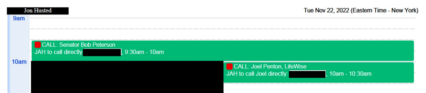 Jon Husted has promoted Lifewise Academy in a series of events held around the state. These events have been reported on as being closed to the press. When asked about the events, proponents of Lifewise will say that Husted helped schools, churches, and communities understand released time and how it can be legally implemented. Husted’s official calendar says otherwise. There were 16 events labeled as “LifeWise” on Husted’s calendar. And one meeting “to call Joel directly.” Joel Penton is the CEO of Lifewise. During 2022 to 2023, Husted held 16 events for Lifewise Academy.