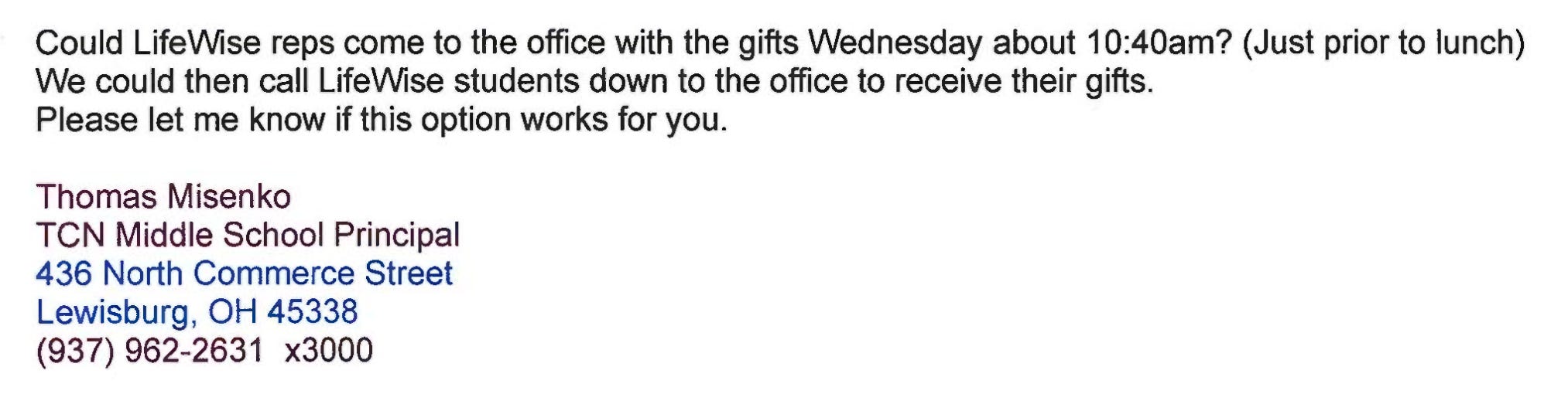 Lifewise Academy on School Property in Tri-County North Middle School