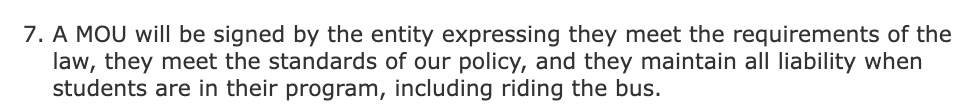 The school district policy requires a signed MOU with Lifewise. The board meeting on December 19, 2024, indicates that an MOU is in place. The local Lifewise Director, Sonya Dulaney, was present at the meeting. Lifewise Academy was aware of these requirements. During the Lifewise discussion, the board asked Sonya a question. The blatant disregard for the school district’s policies is clear.