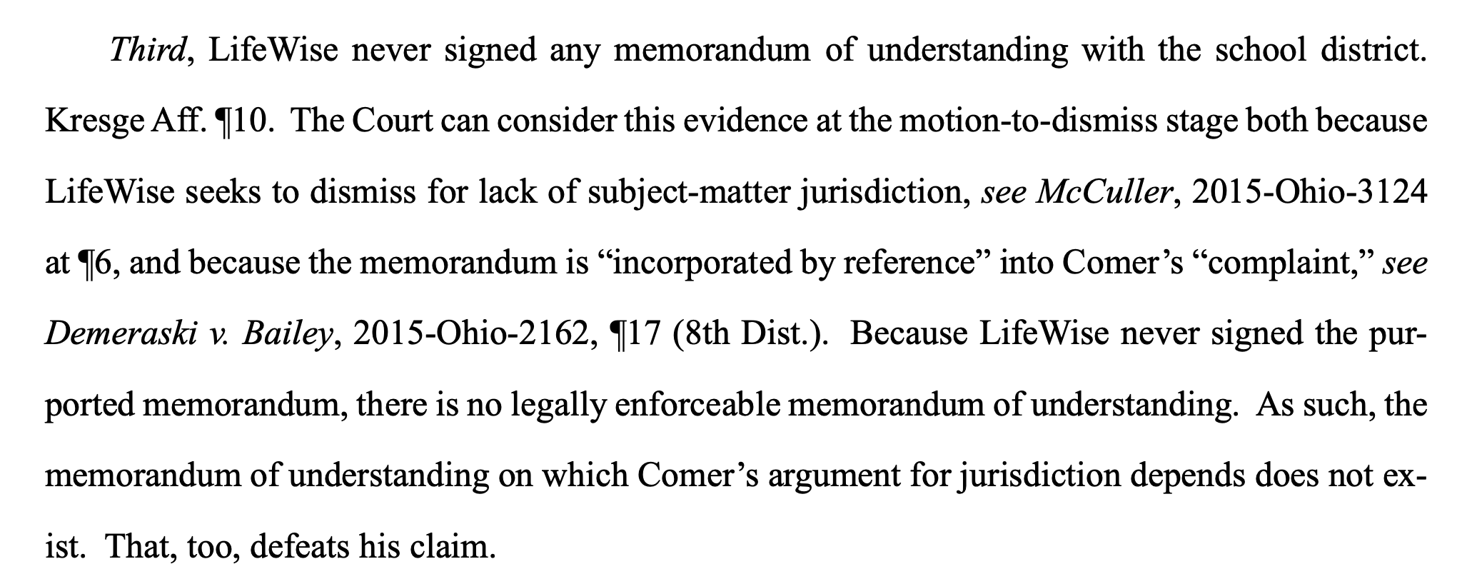 In an Ohio Court of Claims filing (Case 2026-00158PQ), Lifewise Academy has stated that it ignored the Southwest Licking School Board Policy and failed to comply with all required regulations by not signing the memorandum of understanding (MOU). This was covered a couple of days ago, but this filing is new. Concerned parents in the district have asked for the MOU from the district, but have been told one does not exist. Video from a Board of Education meeting indicates that the MOU exists. There is definitely an issue with Lifewise not following the policy, and it’s clear there have been some untruths.